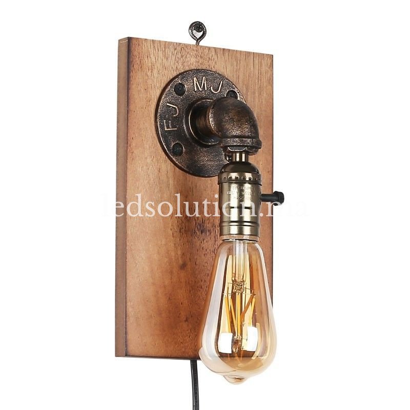 Applique murale industrielle bois et métal au style rétro, idéale pour intérieur (IP20). Compatible ampoule E27, elle apporte une ambiance chaleureuse et une touche décorative élégante à tous vos espaces.